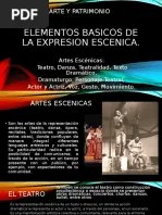 Teatro, danza, teatralidad, texto dramático, dramaturgo, personaje teatral, …. Arte y patrimonio elementos basicos de la expresion escenica. Por su parte, las artes escénicas se conciben como un instrumento fundamental en la formación integral, a pesar de encontrarse dentro de los contenidos del área de educación estética no sólo se ocupa del estudio de las diferentes manifestaciones de la teatralidad, sino que, también, permite que el alumno desarrolle competencias comunicativas, sociales, expresivas, creativas o las relacionadas …