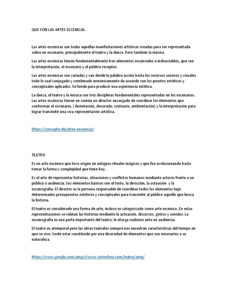 Teatro, danza, teatralidad, texto dramático, dramaturgo, personaje teatral, … Teatro, danza, teatralidad, texto dramático, dramaturgo, personaje teatral, …. Por su parte, las artes escénicas se conciben como un instrumento fundamental en la formación integral, a pesar de encontrarse dentro de los contenidos del área de educación estética no sólo se ocupa del estudio de las diferentes manifestaciones de la teatralidad, sino que, también, permite que el alumno desarrolle competencias comunicativas, sociales, expresivas, creativas o las relacionadas …